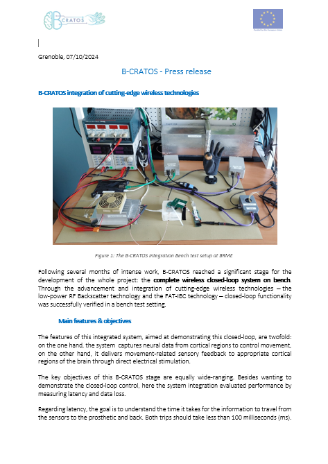 B-CRATOS overcomes technological barriers of wireless brain↔machine↔body communication, and represents the beginning of a paradigm shift in how signals can be sent to restore function and empower individuals.