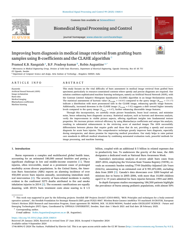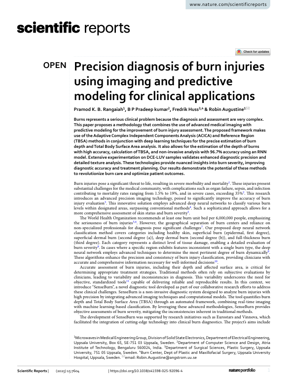 Pramod K. B. Rangaiah, B P Pradeep kumar, Fredrik Huss et al. Precision Diagnosis of Burn Injuries: Clinical Implications of Imaging and Predictive Modeling, 09 October 2024, PREPRINT (Version 1) available at Research Square [https://doi.org/10.21203/rs.3.rs-5002889/v1]